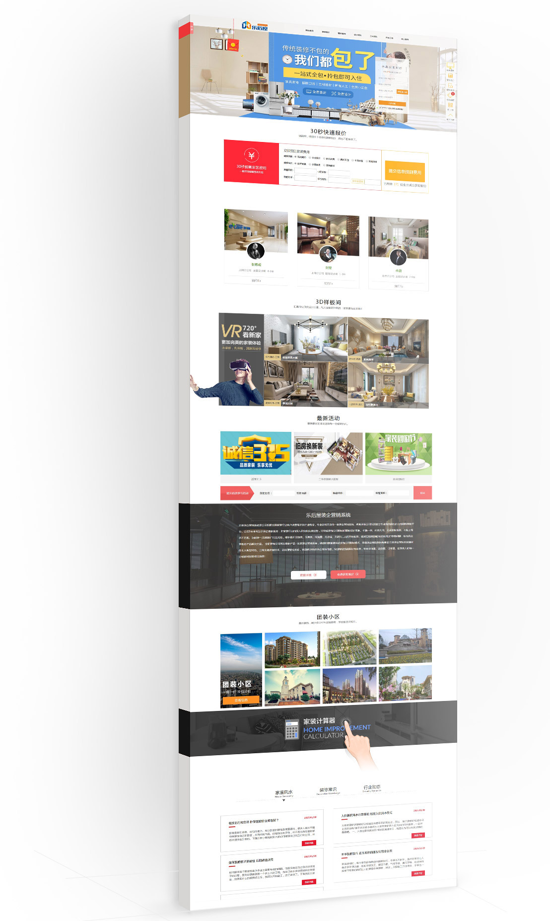 通過專業(yè)策劃、設(shè)計,將裝修報價器、大轉(zhuǎn)盤、抽紅包、優(yōu)惠券等17個營銷元素,根據(jù)業(yè)主需要巧妙安排在網(wǎng)站不同視覺內(nèi),滿足和引導業(yè)主多樣化需求。